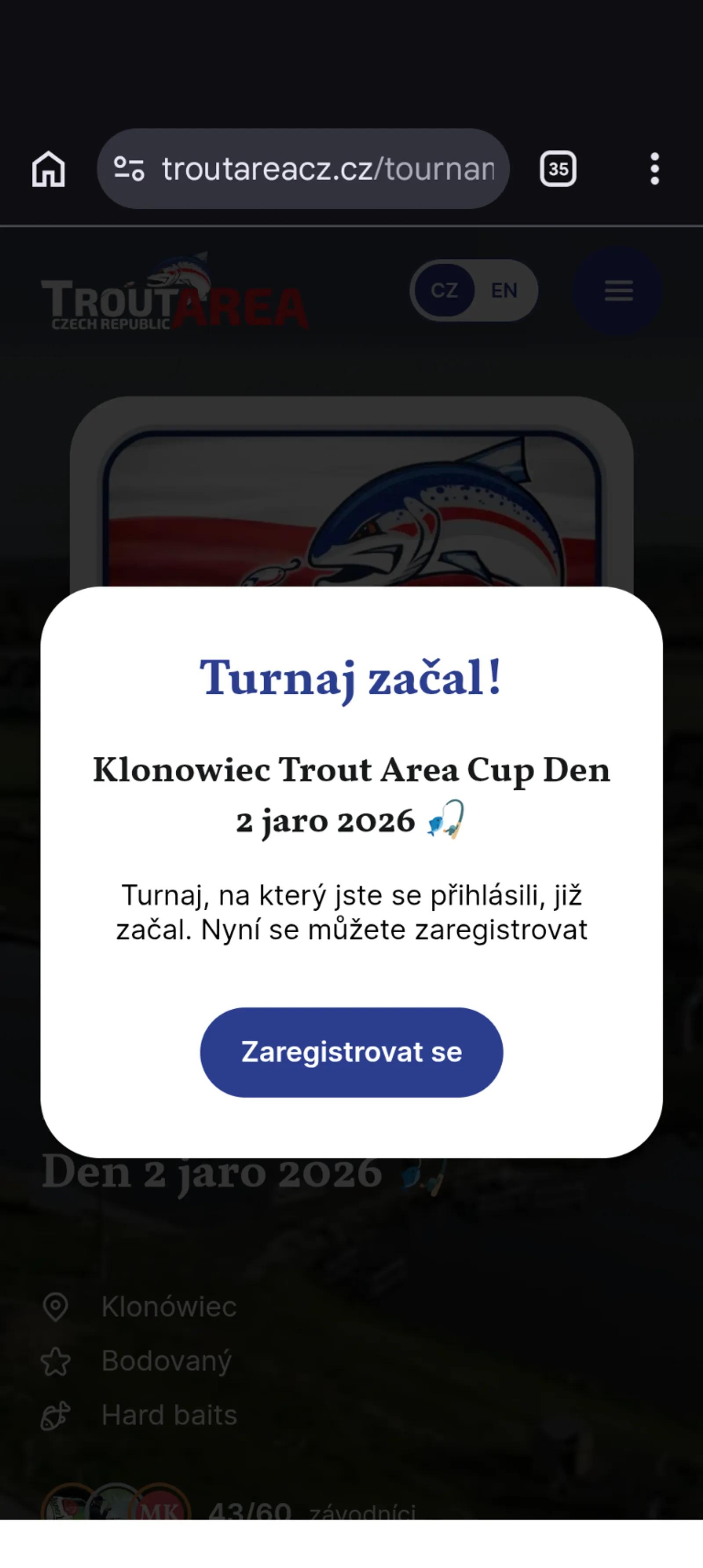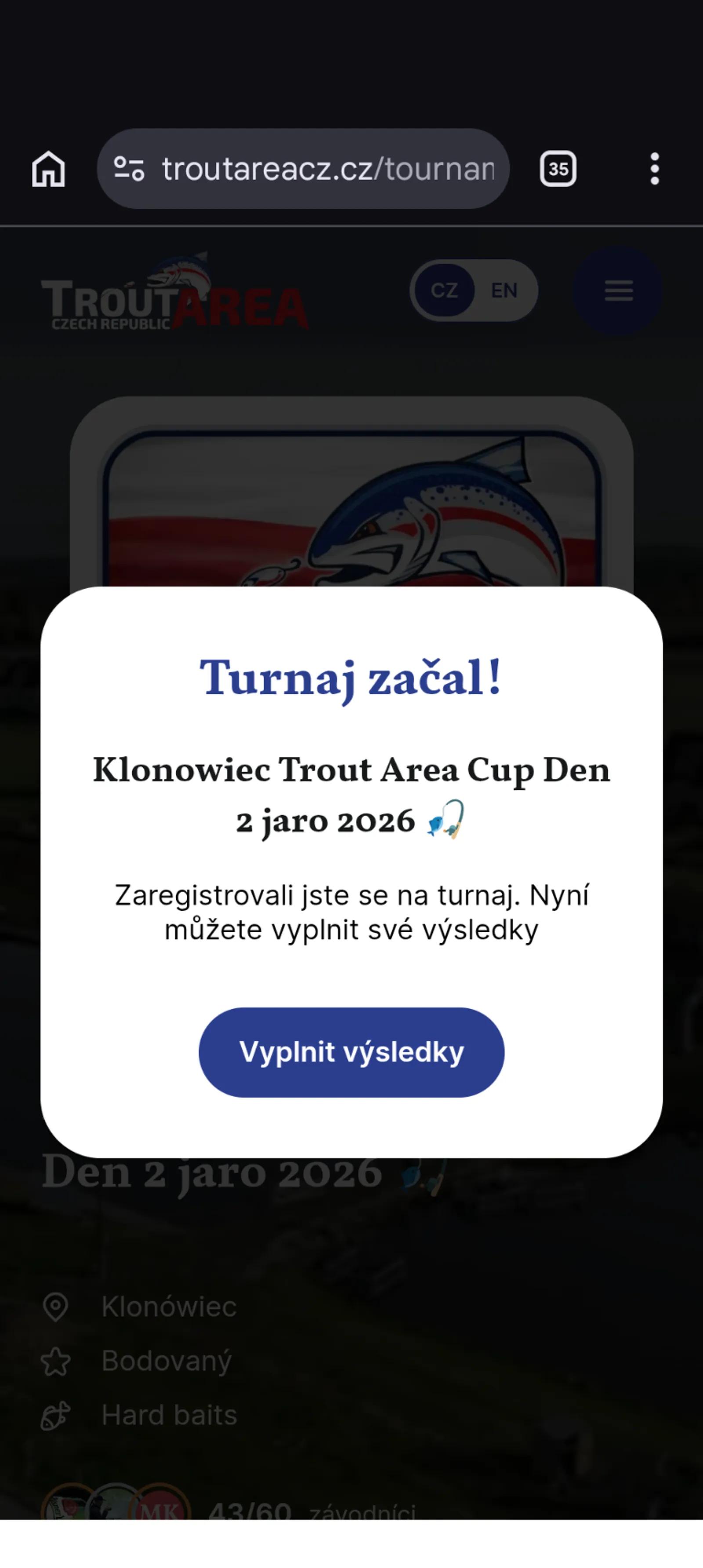 🇨🇿 Čeština Pokud máte problém s telefonem, zapisujte své výsledky na papírovou kartu. Prázdné karty si můžete vyzvednout před začátkem turnaje. Pokud kartu nemáte, stačí zapsat číslo kola, počet vašich ryb a počet ryb soupeře. Administrátor tyto výsledky doplní po skončení turnaje ručně. --- 🇬🇧 English If you have a problem with your phone, write your results on a paper score card. Blank cards can be taken before the start of the tournament. If you do not have a card, it is enough to write the round number, your fish and your opponent’s fish. The administrator will enter the results manually at the end of the tournament. --- 🇵🇱 Polski Jeśli masz problem z telefonem, zapisz swoje wyniki na papierowej karcie. Puste karty można odebrać przed rozpoczęciem turnieju. Jeśli nie masz karty, wystarczy zapisać numer tury, liczbę Twoich ryb oraz liczbę ryb przeciwnika. Administrator uzupełni wyniki ręcznie po zakończeniu turnieju. --- 🇺🇦 Українська Якщо у вас виникли проблеми з телефоном, записуйте результати на паперову картку. Порожні картки можна отримати перед початком турніру. Якщо у вас немає картки, достатньо записати номер туру, кількість ваших риб та кількість риб суперника. Адміністратор внесе результати вручну після завершення турніру.
